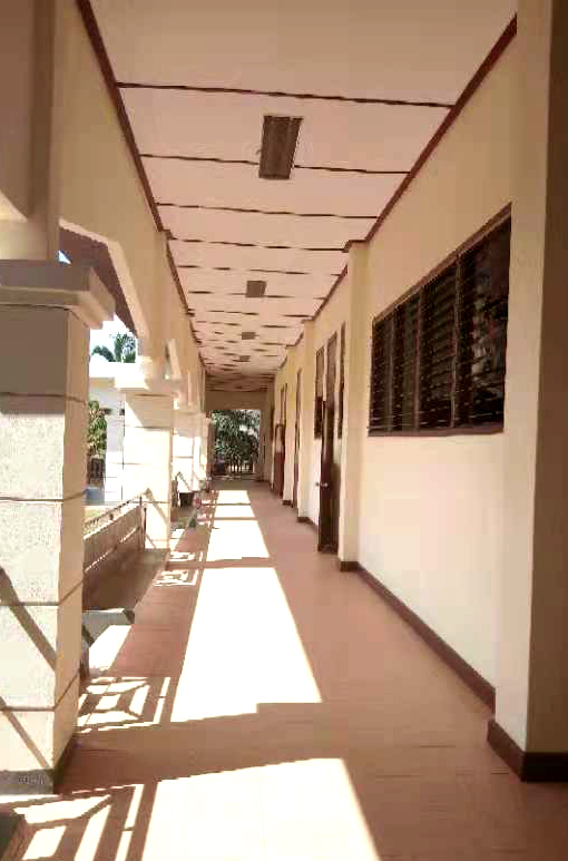 這是我上課的教學(xué)樓——語(yǔ)言學(xué)院,遵循著“看人先看臉”的原則,我們先看一下它的外在環(huán)境??催^(guò)前幾期介紹的小伙伴不難發(fā)現(xiàn),老撾國(guó)立大學(xué)的教學(xué)樓基本都是紅頂白墻,活潑跳躍的顏色彰顯著這所學(xué)校的朝氣。