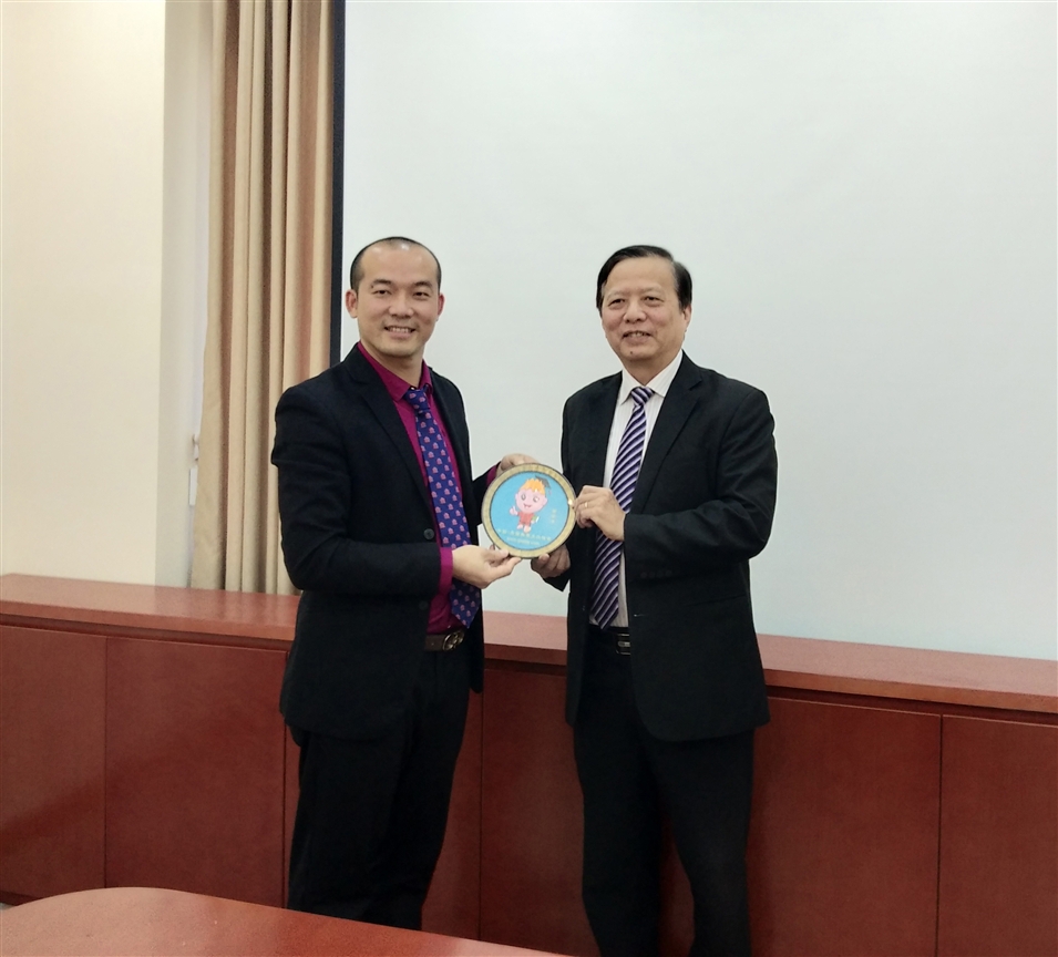 廣西金沛教育執(zhí)行董事粟宥朝(左一)拜訪越南教育部國際合作司副司長范志強(右一)并贈送吉祥物“金小沛”