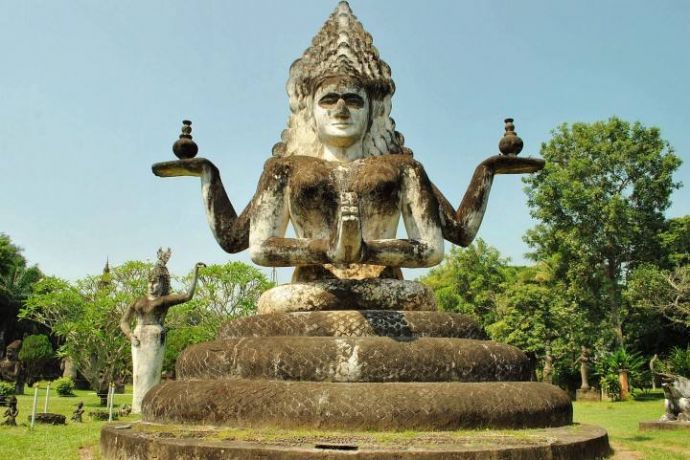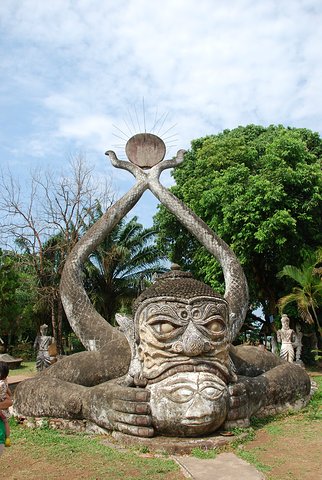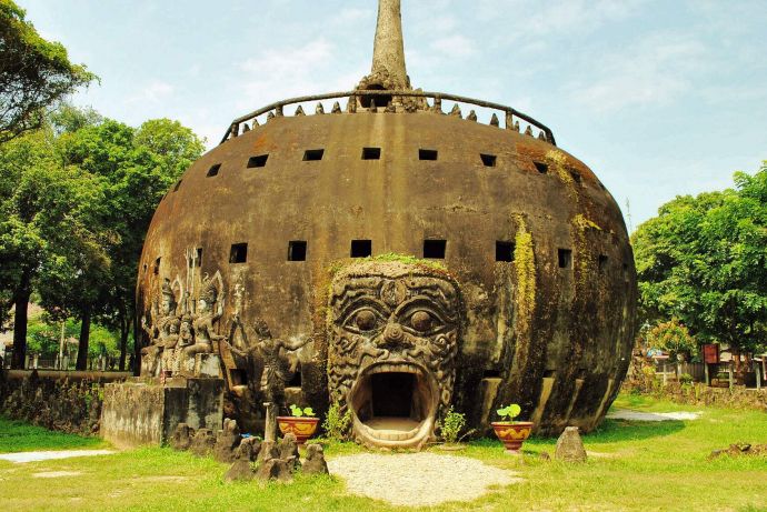 坐落在首都萬象東南部湄公河畔上的香昆寺(又叫佛像公園),如其名,公園里到處都是千姿百態(tài)的佛像和雕塑,是一個怪人荒誕野心的紀念物。它的創(chuàng)建者創(chuàng)建者班勒威·蘇里拉是一名泰國僧侶,他將印度教和佛教的哲學思想、傳說和肖像學融會貫通,組合成一個神秘的整體。