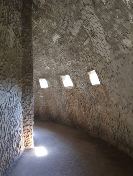 塔分三層,從低到高分別代表地獄、人間和天堂。地獄的雕像多以惡鬼骷髏為主,沿著“天堂地獄塔”張開的嘴巴進入,拾階而上,沿著一層環(huán)繞的塔邊,塔心設計為用水泥澆筑的各種地獄景象,光線從塔壁蜿蜒進去,微弱的光打在面目可怖的鬼怪雕塑上,讓人心生敬畏。