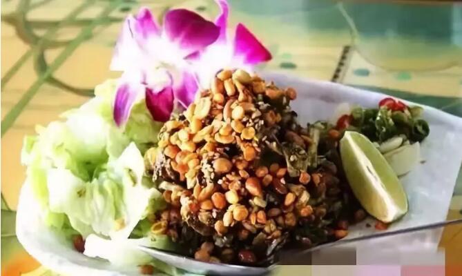 或許緬甸最知名的食物就屬茶葉沙拉了,被稱作緬甸的國菜。大家常把茶葉作為甜點吃,但有時分茶葉也會作為茶葉沙拉的質(zhì)料呈現(xiàn)。