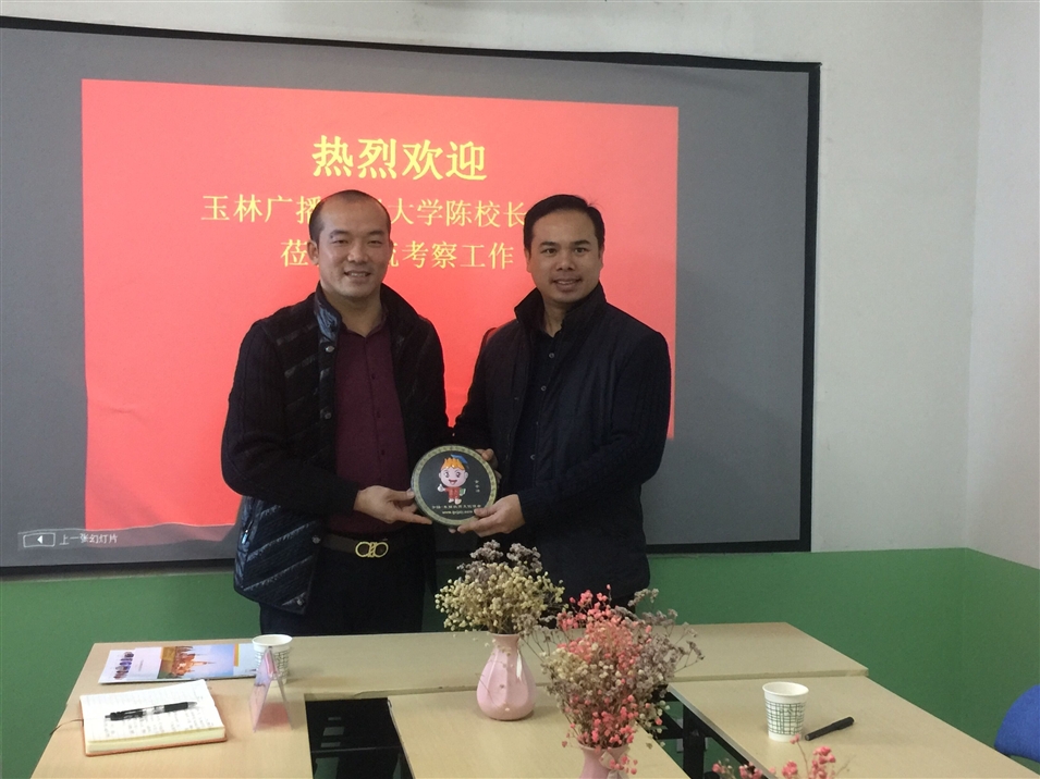 我司向廣西廣播電視大學玉林黨委副書記分校贈送我司吉祥物紀念品