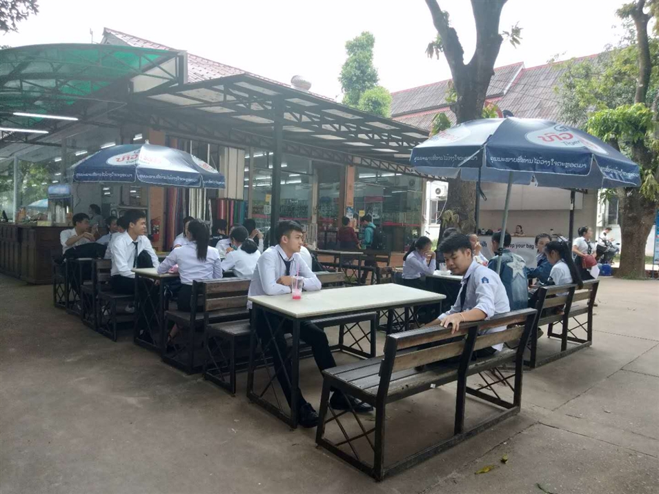 郁郁蔥蔥的東南亞特色的植被中,紅白相間的老撾語(yǔ)教學(xué)樓十分醒目,跳躍在金色陽(yáng)光下的東南亞特色建筑教室,顯得干凈整潔。