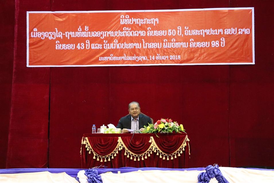 老撾國立大學(xué)領(lǐng)導(dǎo)班子、骨干教師和全體師生參與了本次會(huì)議,大家共同收聽了“建立華潘省會(huì)曬市革命根據(jù)地50周年”,“老撾人民民主共和國成立43周年”,“主席誕辰地方梵?。ǚ鸾堂~)98周年”等重要講話內(nèi)容,深入學(xué)習(xí)講話精神。