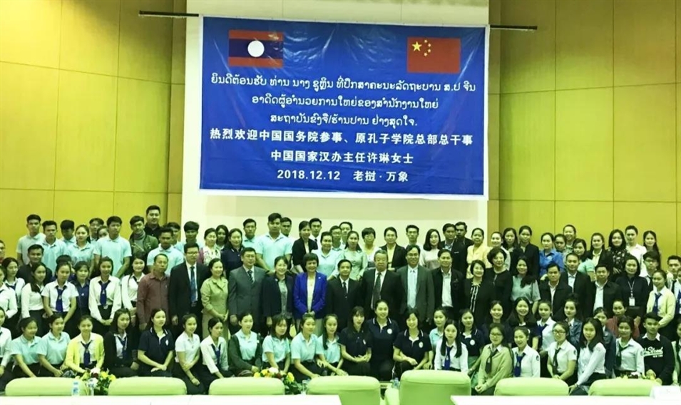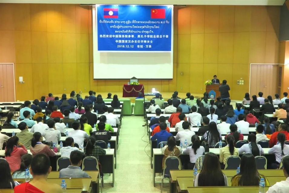 12月12日上午,中國國務(wù)院參事、原孔子學(xué)院總部總干事、中國國家漢辦主任許琳應(yīng)邀訪問老撾國立大學(xué),并在老撾國立大學(xué)舉辦了題為《“一帶一路”與老撾和東盟》的主題講座。