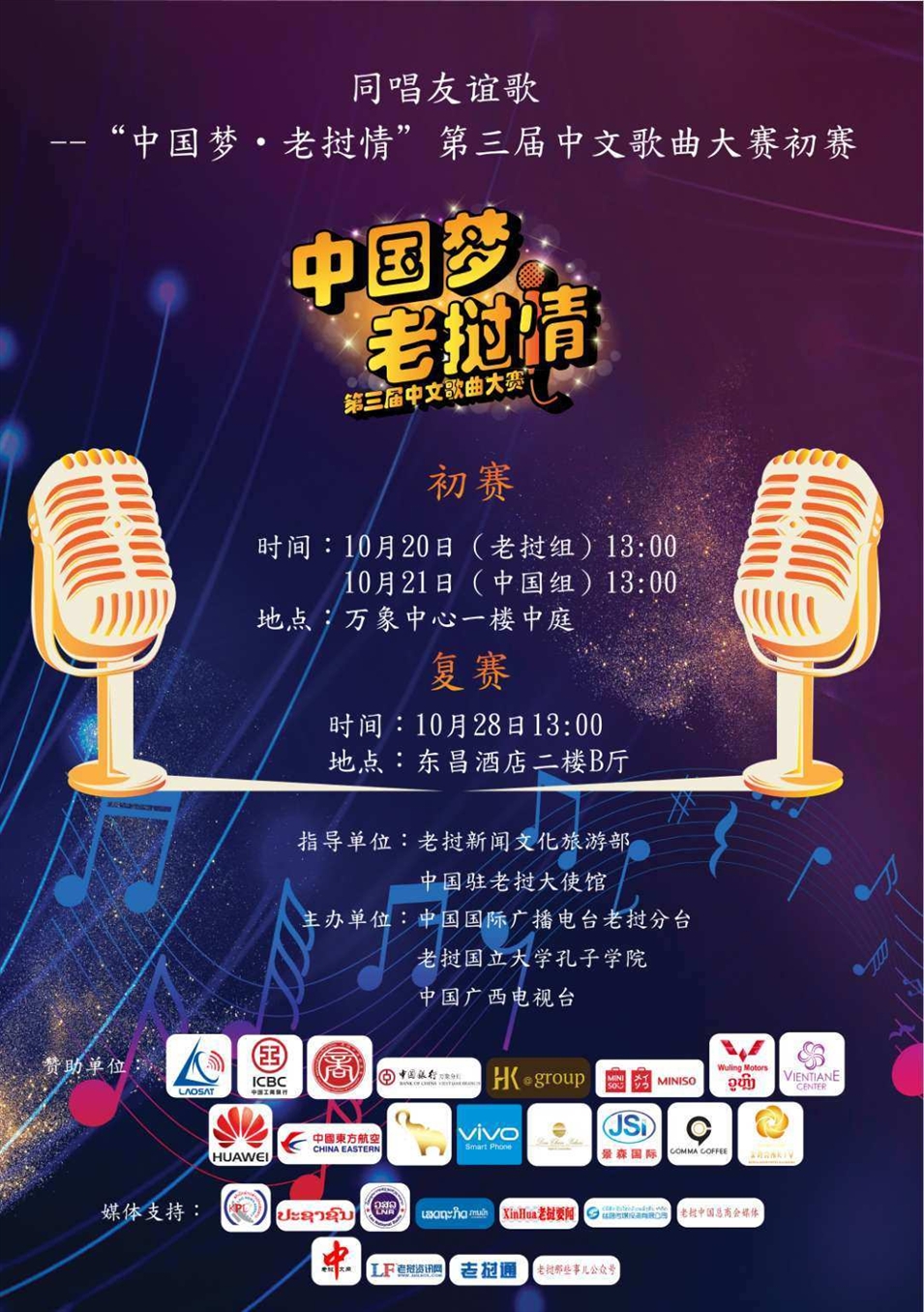 “中國(guó)夢(mèng)·老撾情”第三屆中文歌曲大賽正在如火如荼地進(jìn)行,經(jīng)過(guò)10月20日、10月21日激烈的初賽角逐,中國(guó)組、老撾組分別有15名選手進(jìn)入復(fù)賽。