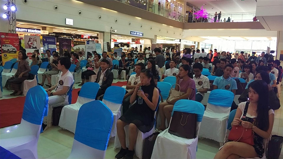 20日中午,萬(wàn)象中心大廳坐滿了人,現(xiàn)場(chǎng)布置以藍(lán)白為主,看起來(lái)整潔典雅。主持人的開場(chǎng)白點(diǎn)燃現(xiàn)場(chǎng)觀眾的熱情,比賽正式拉開帷幕。
